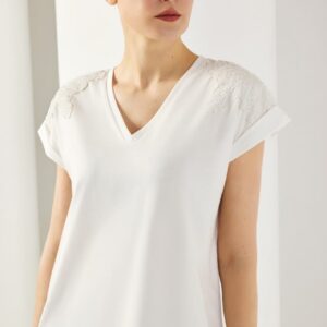 NOVITA OMUZLARI NAKIŞLI YUVARLAK YAKALI TİŞÖRT