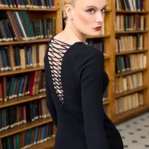 NOVITA ARKASI BAĞCIK DETAYLI TRİKO ELBİSE